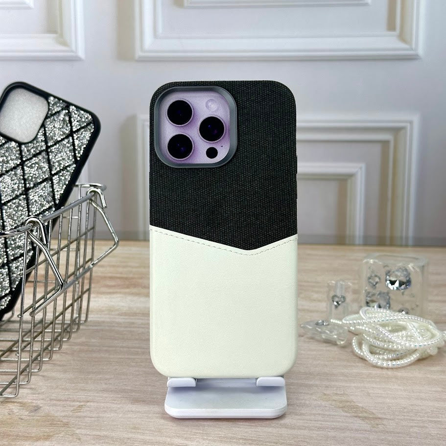 Cuero tejido mgs blanco y negro IPH 14 PRO MAX